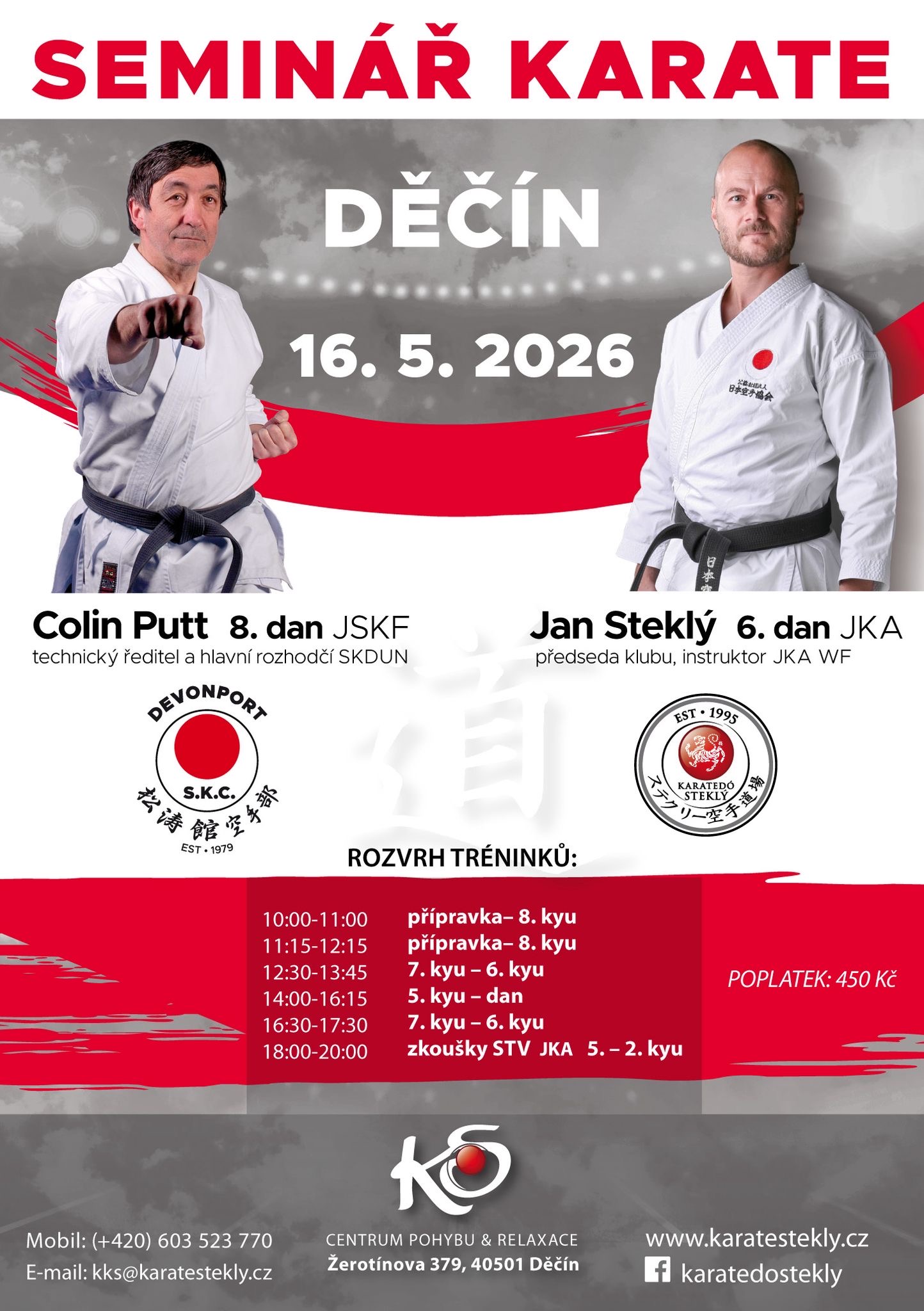 Joint seminar with Colin Putt sensei (8th dan JSKF) and Jan Stekly sensei (6th dan JKA). Open to JKA and SKDUN GB members.